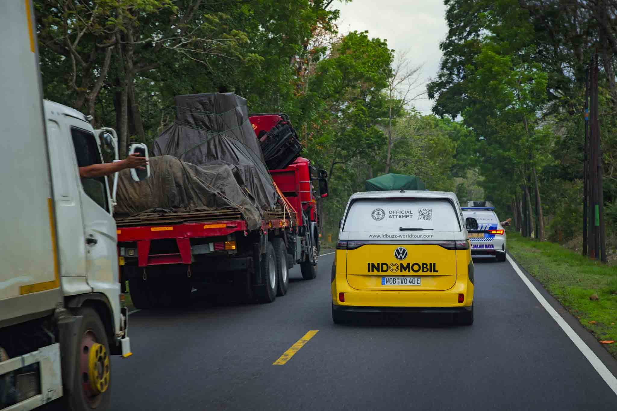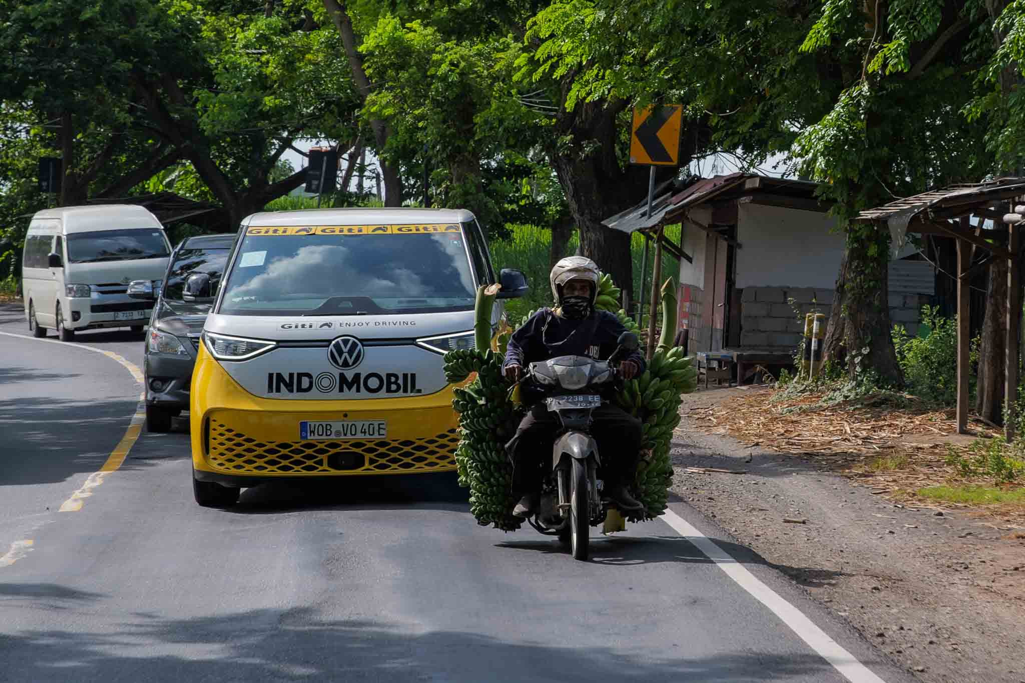 After leaving the national highway, the police provided an escort and accompanied us along the remaining stretch towards Bali. Their presence lent the drive a sense of occasion, as if the ID. Buzz were part of a rolling ceremony rather than just another vehicle on the road.