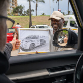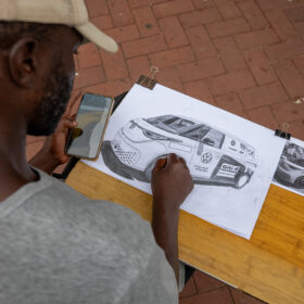 Durban reveals many contrasts: historic colonial-era buildings stand alongside modern landmarks such as the iconic Moses Mabhida Stadium, shaping the city’s diverse character. In an unexpected encounter, a local artist approached us and offered to paint our VW ID. Buzz — with a truly outstanding result.