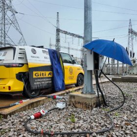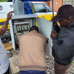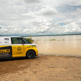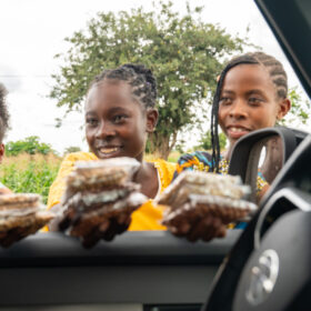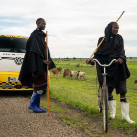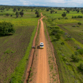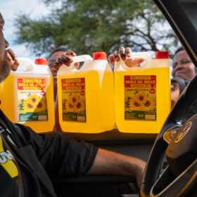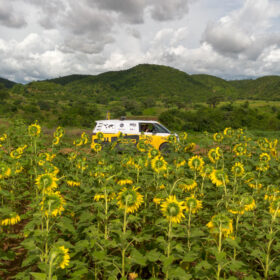 After a rainy charging stop at the next substation, we continued our journey toward Kahama. The landscape gradually changed as we entered a region where sunflowers are widely cultivated. Along the roadside, sunflower oil was being sold almost everywhere.