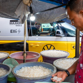 Our journey continued as we departed Jakarta in the ID. Buzz, bound for Semarang. A brief stop at one of the city’s bustling markets brought us face to face with its tightly packed stalls and energetic vendors—a vibrant, slightly chaotic start to the day.